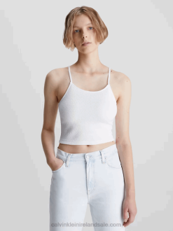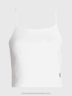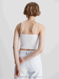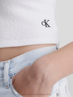 F64Z1869 Bright White Women Calvin Klein Seersucker Stretch Cropped Top