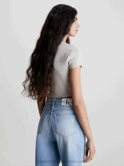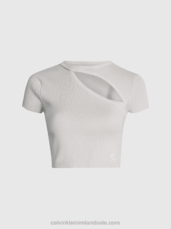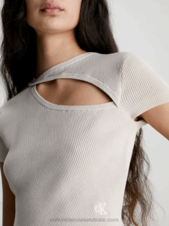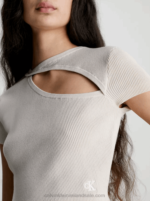 F64Z1876 Classic Beige Women Calvin Klein Organic Cotton Cut Out Top