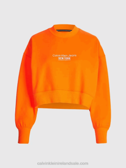 F64Z1362 Light Grey Heather Women Calvin Klein Logo Sweatshirt