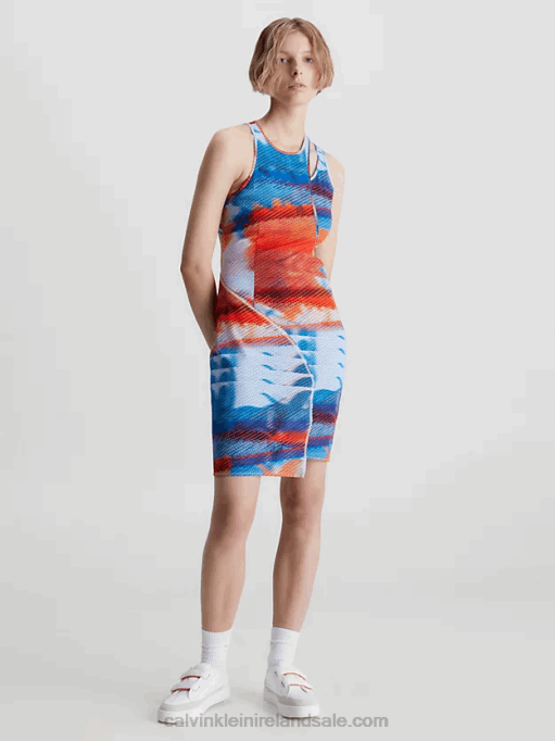 F64Z671 Ultra Blue Women Calvin Klein Slim Ribbed Tank Dress