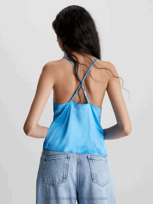 F64Z27 Denim Medium Women Calvin Klein Denim Zip Up Bralette Top