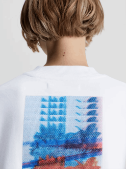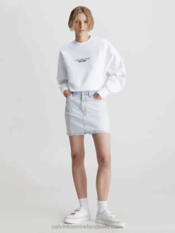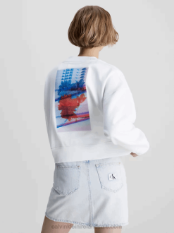 F64Z1888 Bright White Women Calvin Klein Cropped Embroidered Sweatshirt