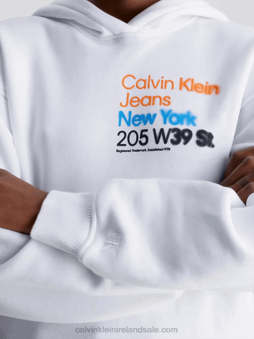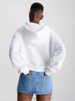 F64Z1313 Bright White Women Calvin Klein Cotton Blend Fleece Hoodie