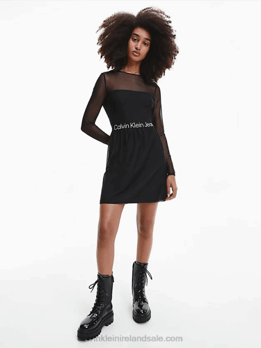 F64Z48 Black Women Calvin Klein Plus Size Long T-shirt Dress