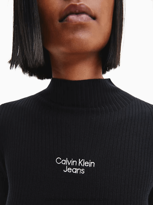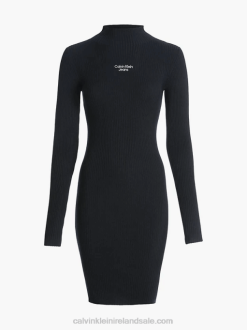 F64Z1929 Black Women Calvin Klein Slim Rib-Knit Jumper Dress