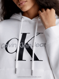 F64Z1313 Bright White Women Calvin Klein Cotton Blend Fleece Hoodie