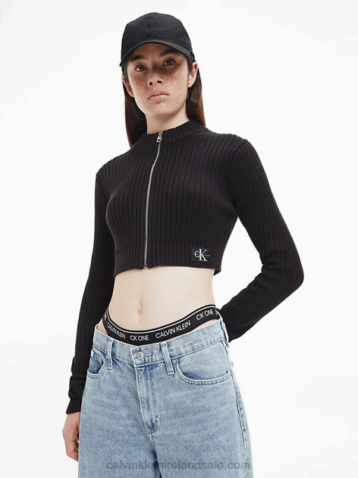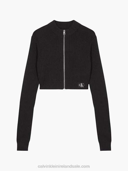 F64Z1991 Black Women Calvin Klein Cropped Zip Up Cardigan