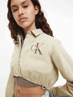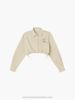 F64Z2003 Travertine Women Calvin Klein Cropped Cotton Twill Shirt