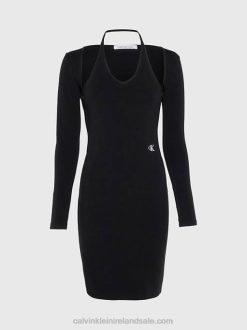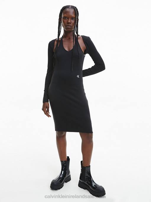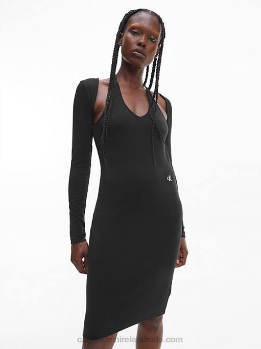 F64Z2010 Black Women Calvin Klein 2-in-1 Bodycon Midi Dress