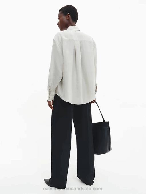 F64Z2036 Moss Gray Women Calvin Klein Oversized Sheer Tencel Shirt