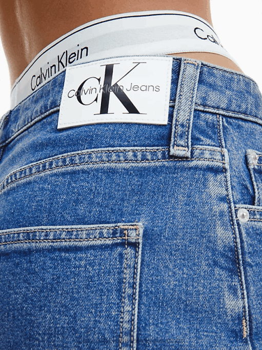 F64Z27 Denim Medium Women Calvin Klein Denim Zip Up Bralette Top