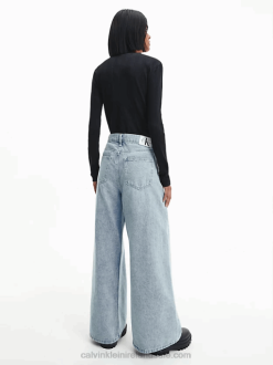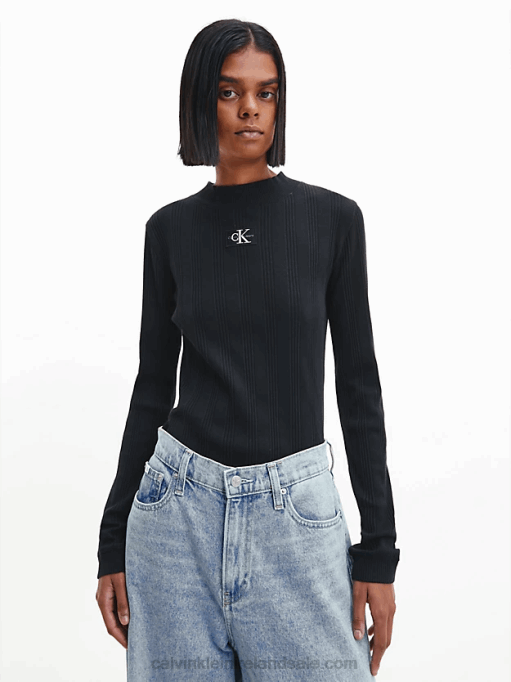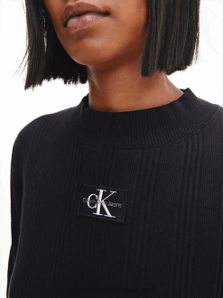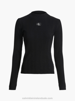 F64Z2058 Black Women Calvin Klein Slim Ribbed Long Sleeve Top