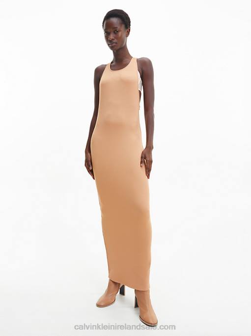 F64Z2066 Pale Terracotta Women Calvin Klein Skinny Sleeveless Bodycon Dress