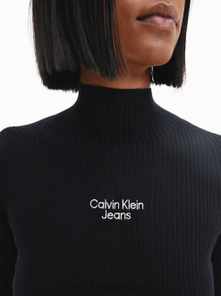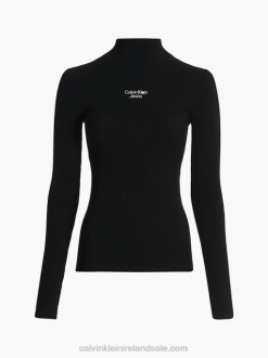 F64Z2085 Black Women Calvin Klein Slim Rib-Knit Jumper
