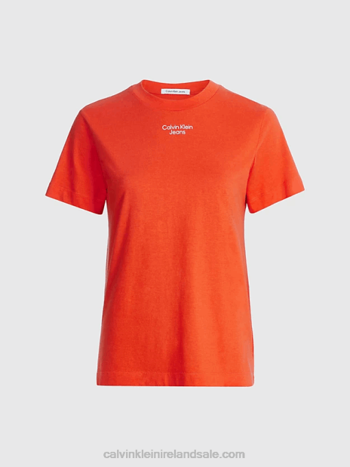 F64Z87 Pink Flash Women Calvin Klein Slim Organic Cotton T-shirt