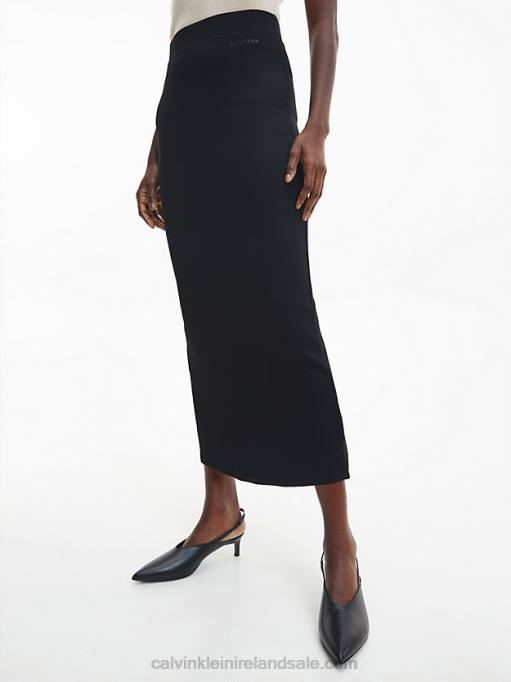 F64Z47 Black Women Calvin Klein Plus Size Ribbed Monogram Tank Dress