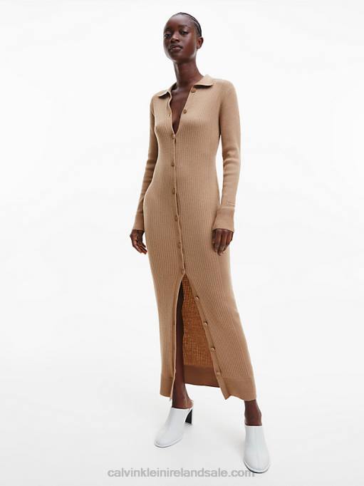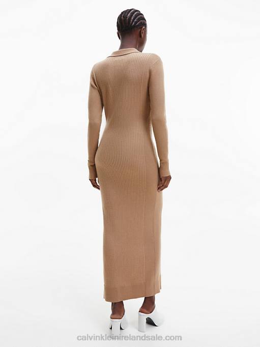 F64Z2104 Safari Canvas Women Calvin Klein Wool Lyocell Ribbed Dress