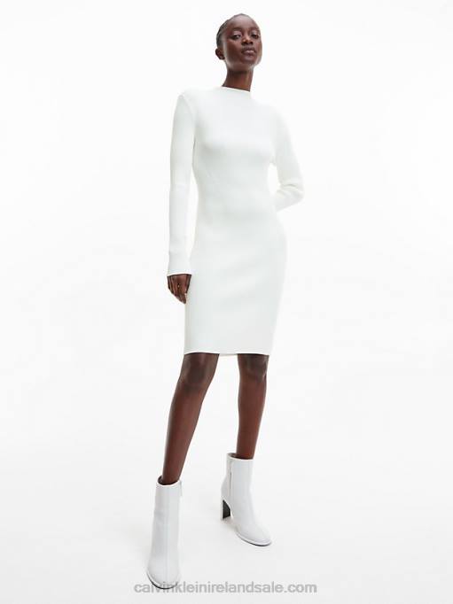 F64Z509 Bright White Women Calvin Klein Monogram Maxi T-shirt Dress