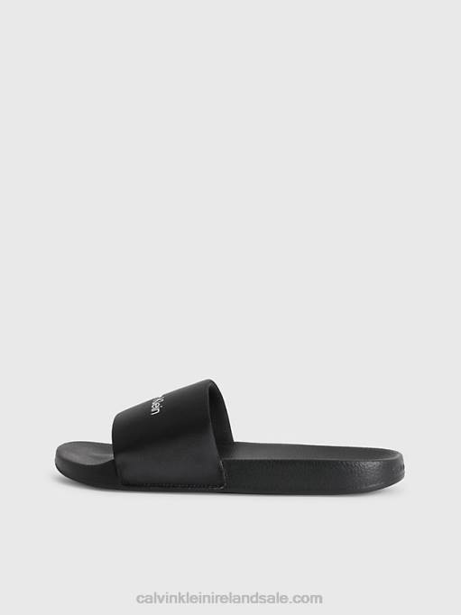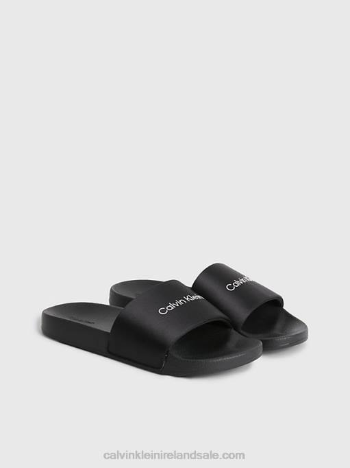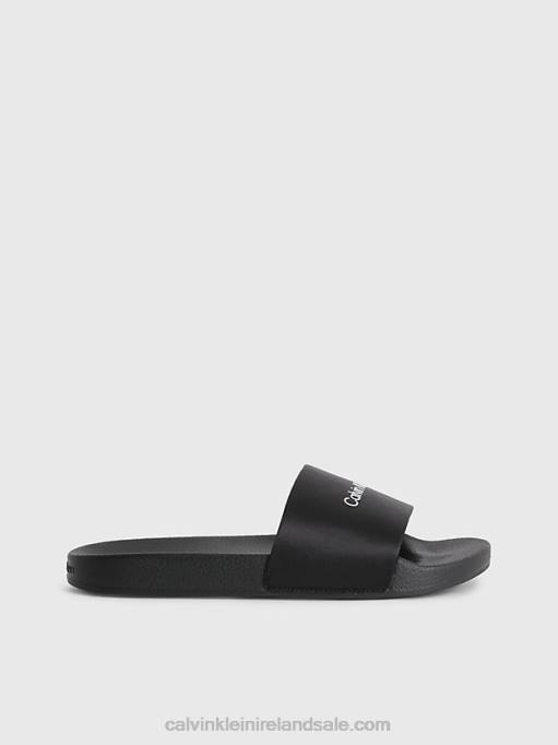 F64Z211 Black/Bright White Women Calvin Klein Recycled Satin Sliders
