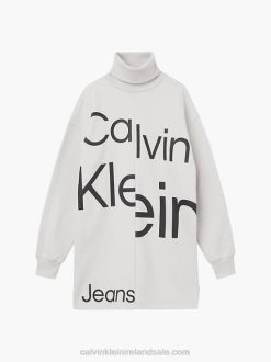 F64Z509 Bright White Women Calvin Klein Monogram Maxi T-shirt Dress
