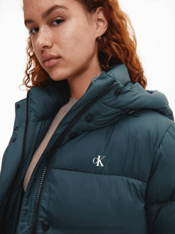 F64Z539 Black Women Calvin Klein Cropped Hooded Puffer Gilet