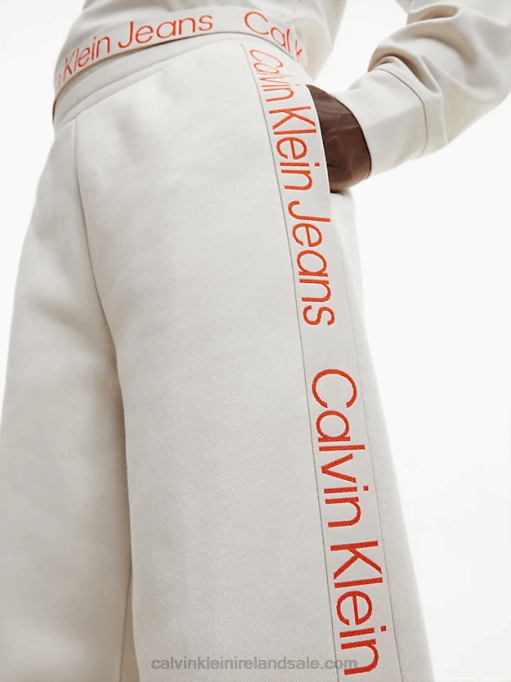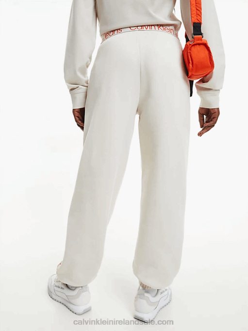 F64Z818 Smooth Beige Women Calvin Klein Linen Wide Leg Trousers