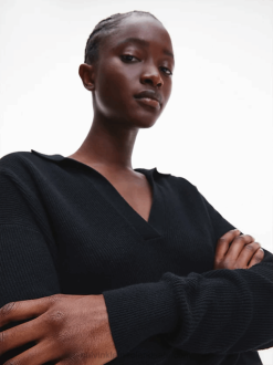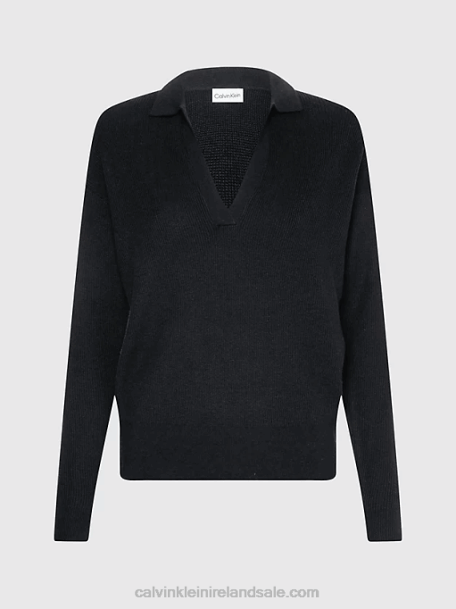 F64Z2170 Black Women Calvin Klein Relaxed Ribbed Jumper