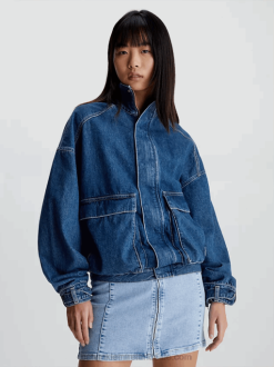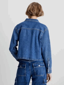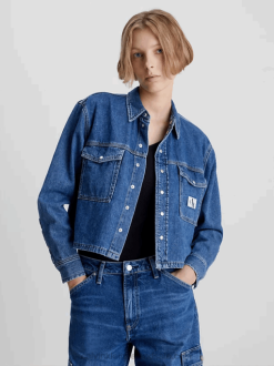 F64Z169 Denim Dark Women Calvin Klein Cropped Denim Shirt Jacket