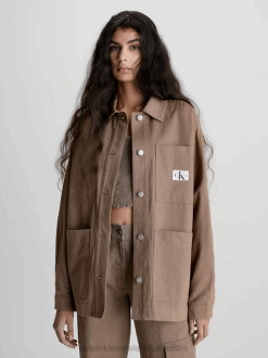 F64Z508 Shitake Women Calvin Klein Relaxed Utility Shirt Jacket