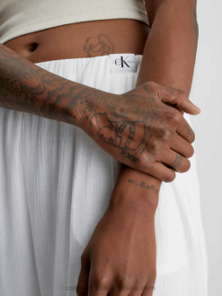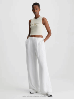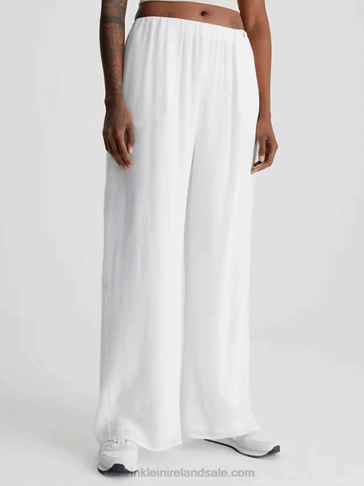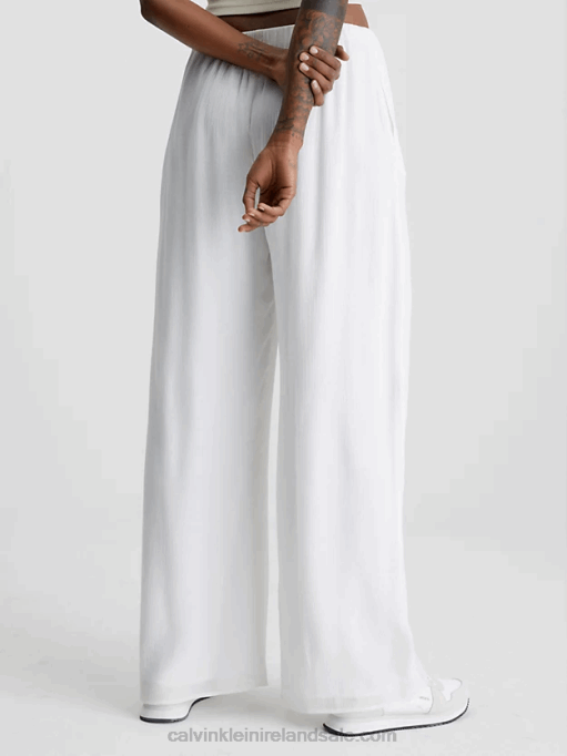 F64Z2177 Ancient White Women Calvin Klein Crinkle Rayon Wide Leg Trousers