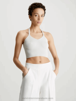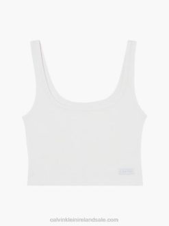 F64Z219 Bright White Women Calvin Klein Slim Cotton Rib Tank Top