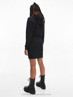 F64Z47 Black Women Calvin Klein Plus Size Ribbed Monogram Tank Dress