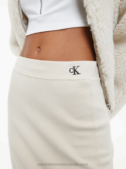 F64Z187 Soft Beige Women Calvin Klein Hook and Eye Mini Skirt