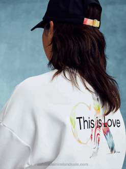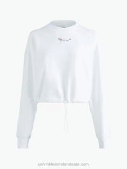F64Z323 Raw Ecru Women Calvin Klein Textured Cap Sleeve Sweatshirt