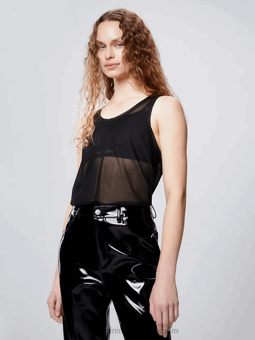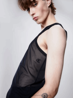 F64Z2274 Black Men Calvin Klein Unisex Slim Mesh Tank Top