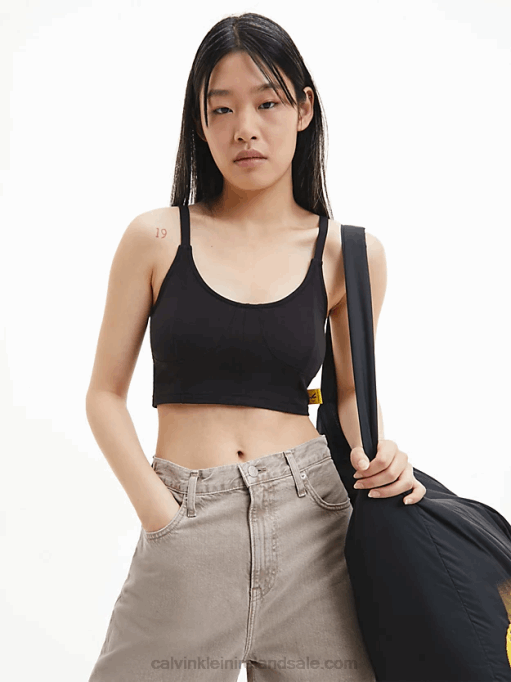 F64Z73 Black Women Calvin Klein Seersucker Stretch Cut Out Top