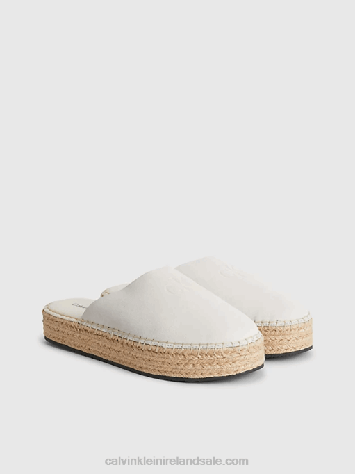 F64Z228 Ancient White Women Calvin Klein Suede Mule Espadrilles