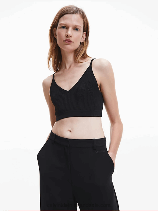 F64Z2295 Black Women Calvin Klein Ribbed Bralette