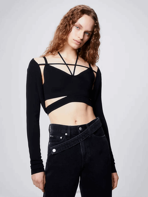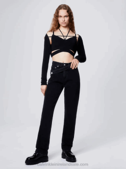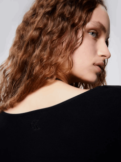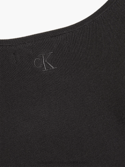 F64Z47 Black Women Calvin Klein Plus Size Ribbed Monogram Tank Dress