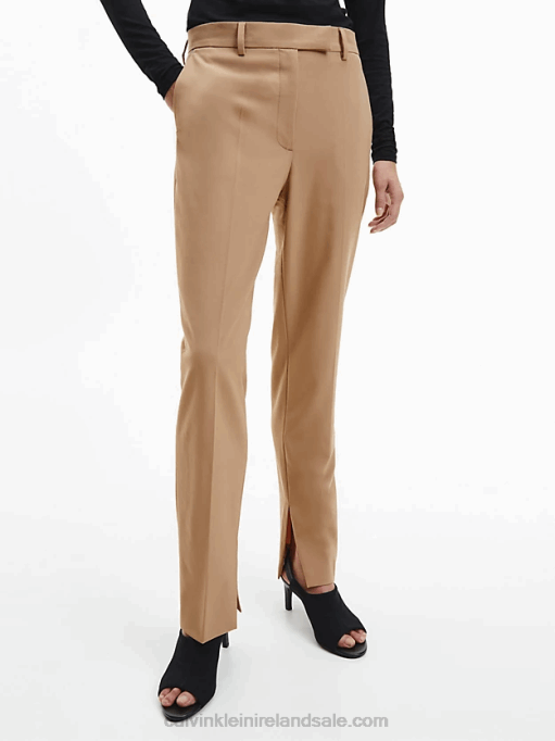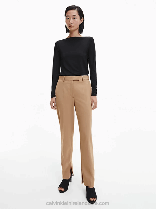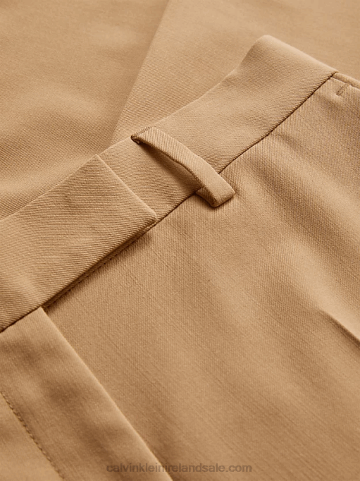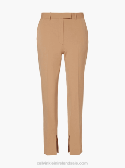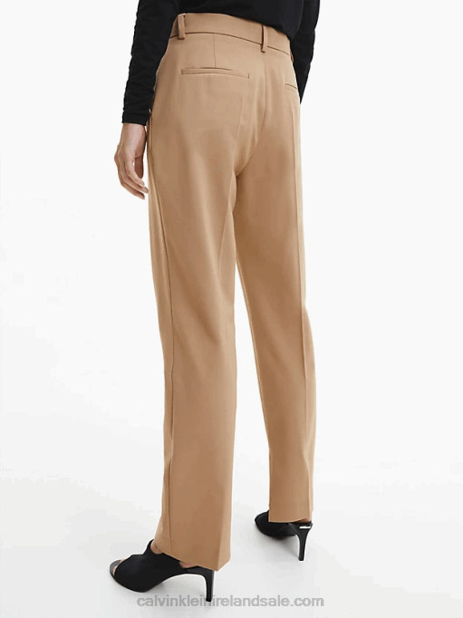 F64Z818 Smooth Beige Women Calvin Klein Linen Wide Leg Trousers