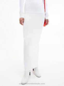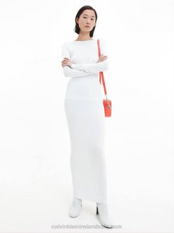 F64Z509 Bright White Women Calvin Klein Monogram Maxi T-shirt Dress