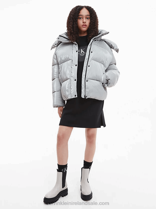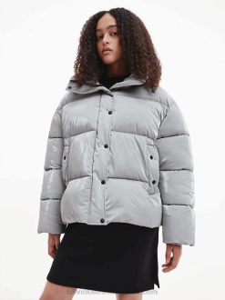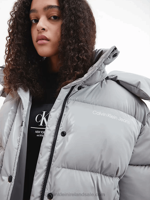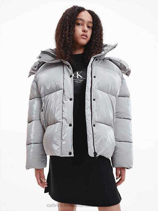 F64Z749 Black Women Calvin Klein Oversized Sateen Parka Coat