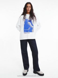 F64Z2349 Brilliant White Men Calvin Klein Unisex Printed Long Sleeve T-shirt