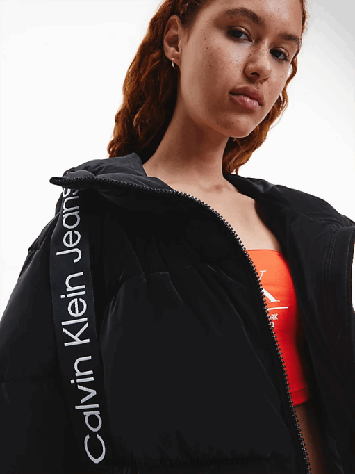 F64Z73 Black Women Calvin Klein Seersucker Stretch Cut Out Top