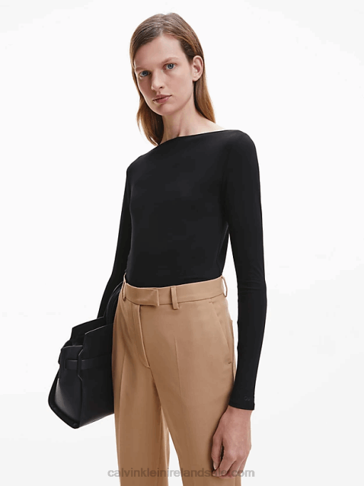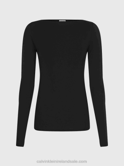 F64Z73 Black Women Calvin Klein Seersucker Stretch Cut Out Top