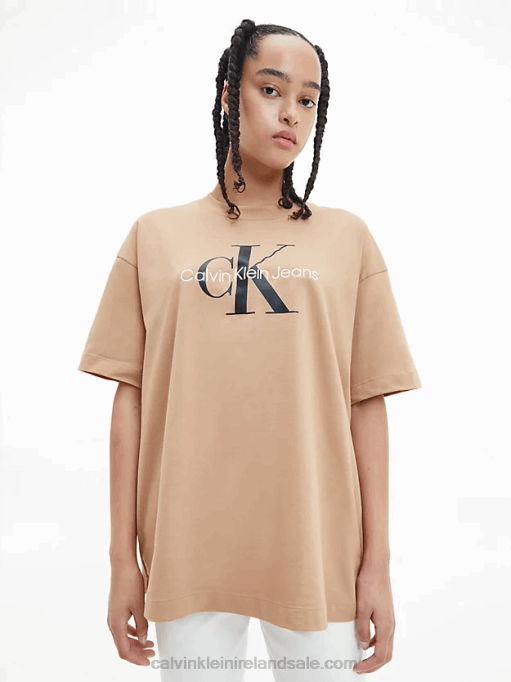 F64Z322 Vintage Ivory Women Calvin Klein Plus Size Logo T-shirt