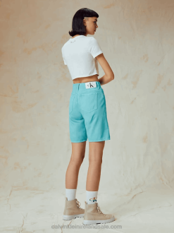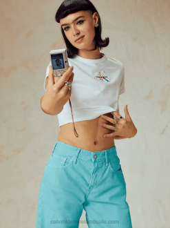 F64Z2389 Bright White Women Calvin Klein Cropped Logo T-shirt