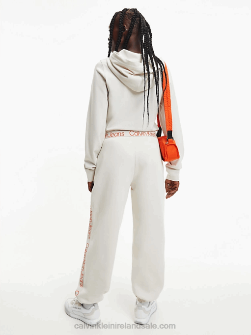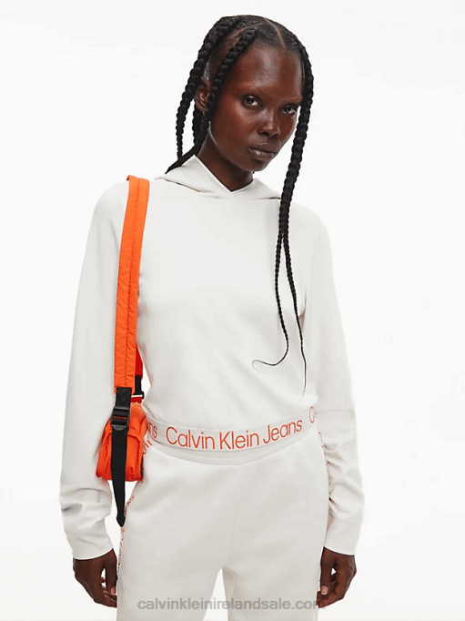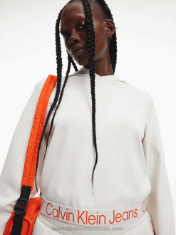 F64Z2399 Eggshell Women Calvin Klein Milano Jersey Cropped Hoodie