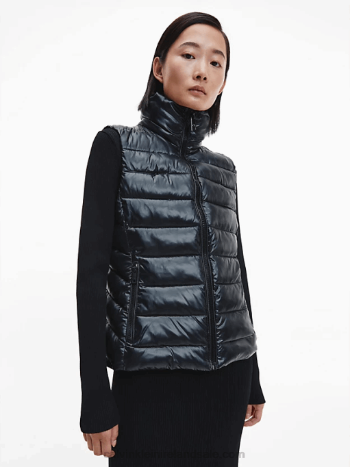 F64Z73 Black Women Calvin Klein Seersucker Stretch Cut Out Top