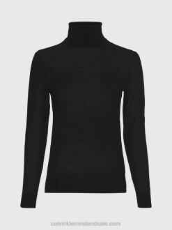F64Z2408 Black Women Calvin Klein Slim Merino Roll Neck Jumper
